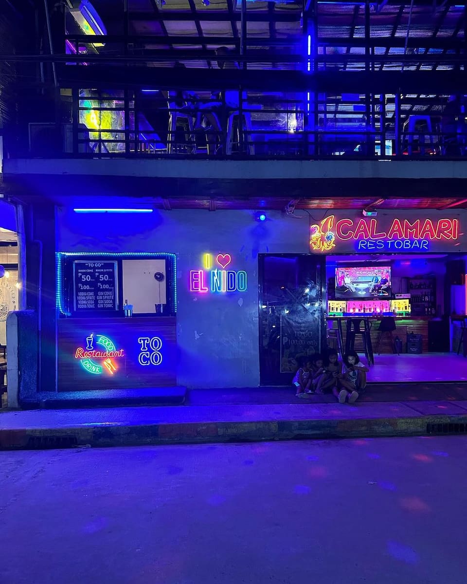 🍹 Punti di riferimento per la vita notturna: Quando il sole tramonta, la città di El Nido si anima di una vivace vita notturna. Recatevi in alcuni dei bar e dei club più famosi della zona per una notte di divertimento ed eccitazione: