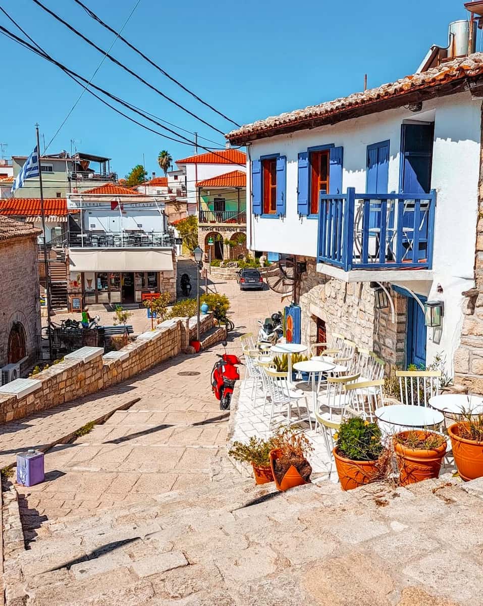 Afitos è arroccata su una scogliera che domina il Golfo di Toroneos, con le sue case in pietra e i vicoli fioriti che sembrano usciti da una cartolina del villaggio di Afitos. La brezza salata trasporta il profumo del gelsomino dai giardini nascosti mentre si ammira la vista sul mare lungo la passeggiata. Una sera ho passeggiato fino alla piccola piazza e ho trovato una taverna a conduzione familiare dove il proprietario ha insistito perché provassi la ricetta dell’agnello di sua nonna, un’antica tradizione che fa parte della cultura di Kassandra.