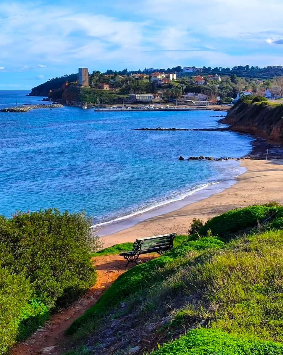 Possidi è famosa per il suo promontorio spettacolare, la spiaggia sabbiosa infinita e i tramonti mozzafiato che la rendono una delle spiagge più panoramiche di Kassandra. Il suono delle onde e il profumo dei pini si fondono mentre si cammina sulle dune sotto un cielo immenso che al tramonto sembra incontaminato. Una sera ho scalato il faro di Capo Possidi, guardando il sole che si scioglieva all’orizzonte mentre i pescatori tiravano le reti sottostanti, una parte senza tempo del ritmo marittimo di Kassandra.