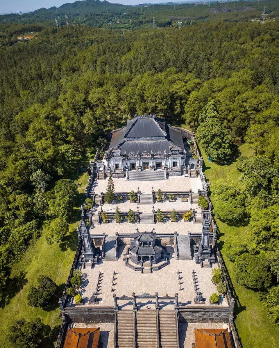 - Tomba dell’imperatore Khai Dinh: Una miscela unica di architettura tradizionale vietnamita ed europea, questa tomba è da visitare per i suoi intricati disegni.